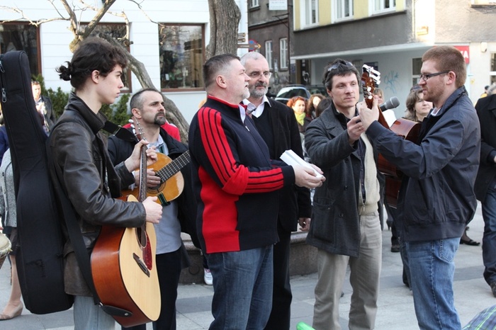 Wstrząsające świadectwa, czytanie Słowa Bożego, śpiew i... taniec! Na bielskim placu Chrobrego ewangelizują Wspólnoty Drogi Neokatechumenalnej.