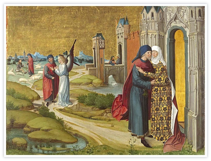 Popularnym symbolem niepokalanego poczęcia było wówczas spotkanie rodziców Matki Bożej, świętych Anny i Joachima, przed Złotą Bramą w Jerozolimie, opisane w tzw. Protoewangelii Jakuba – jednym z apokryfów, czyli tekstów opowiadających o czasach biblijnych, ale nieuznanych przez Kościół za natchnione i niewłączonych do Pisma Świętego.